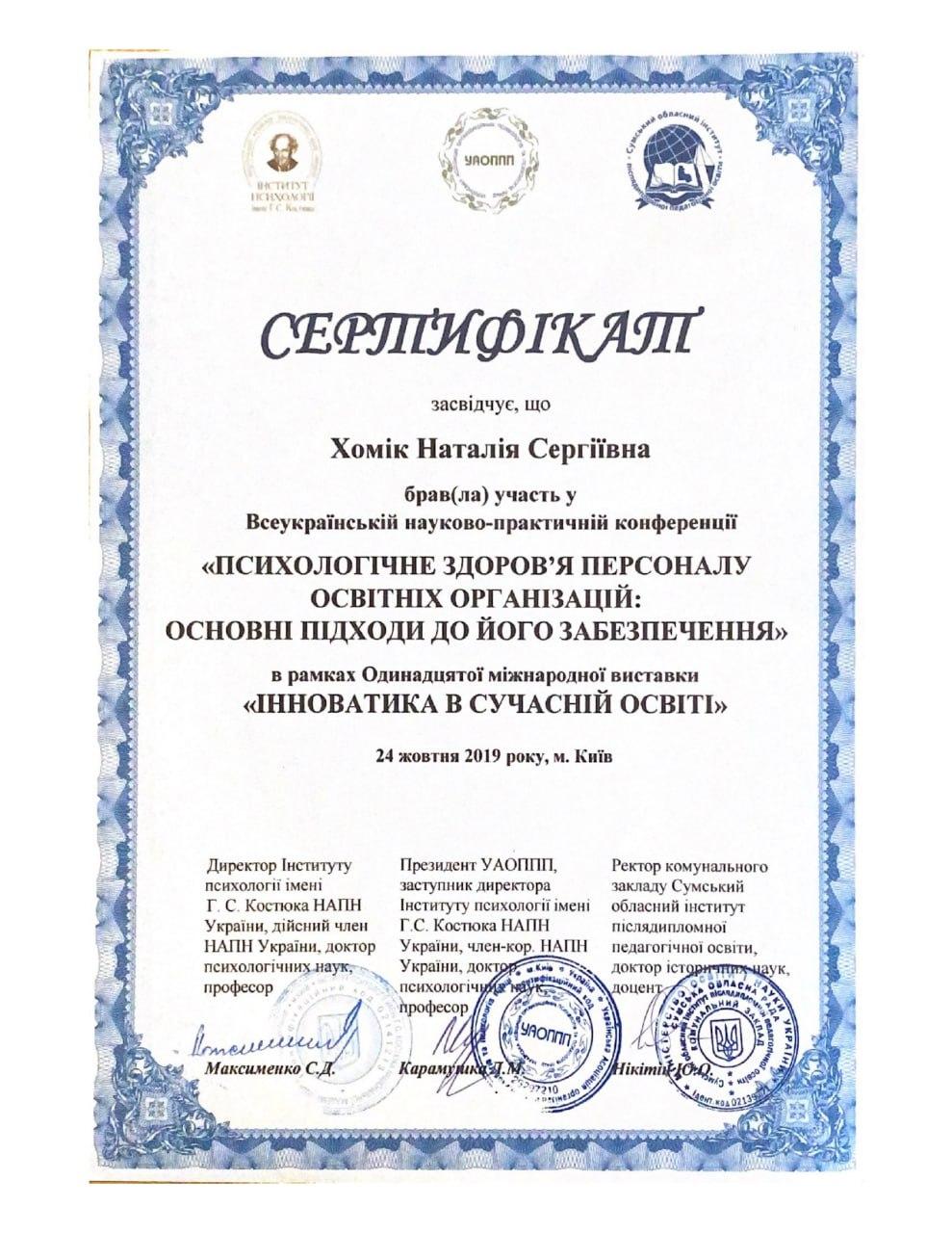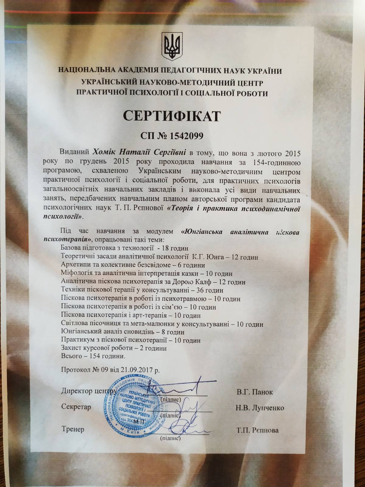Ukrainian Scientific and Methodological Center of Practical Psychology and Social Work "Theory and Practice of Psychodynamic Psychology", 2017.