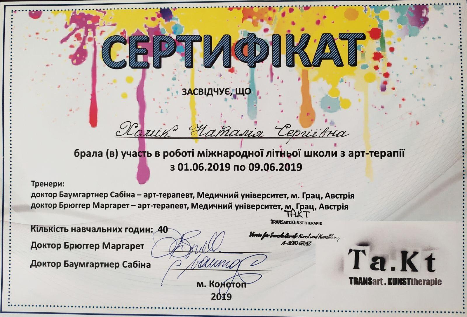 International Summer School of Art Therapy (Working with Trauma), 2019.