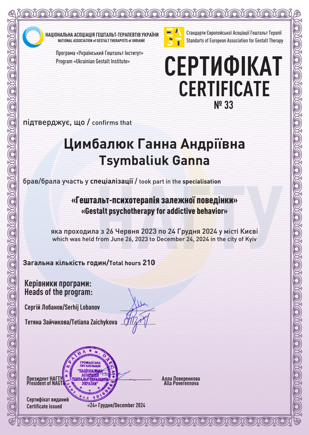 Гештальт-психотерапия зависимого поведения (НАГТУ, 2023-2024 годов обучения).
