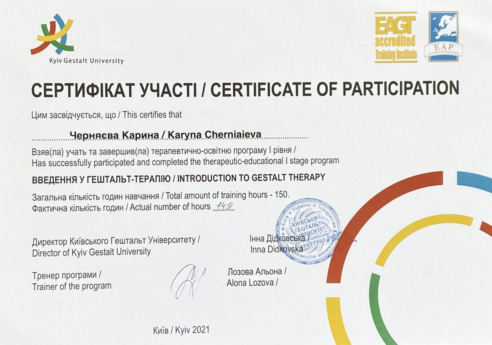 Программа I уровня. Введение в гештальт-терапию, 150 часов. Киевский гештальт университет.