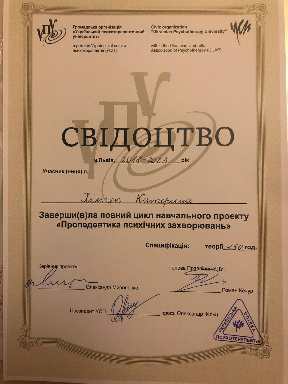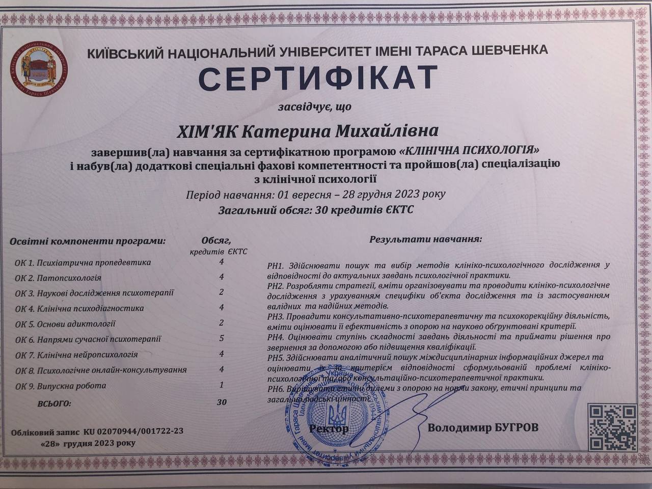 Киевский национальный университет им. Т.Г. Шевченко, Институт последипломного образования: сертификатная программа "КЛИНИЧЕСКАЯ ПСИХОЛОГИЯ", 2023 г.