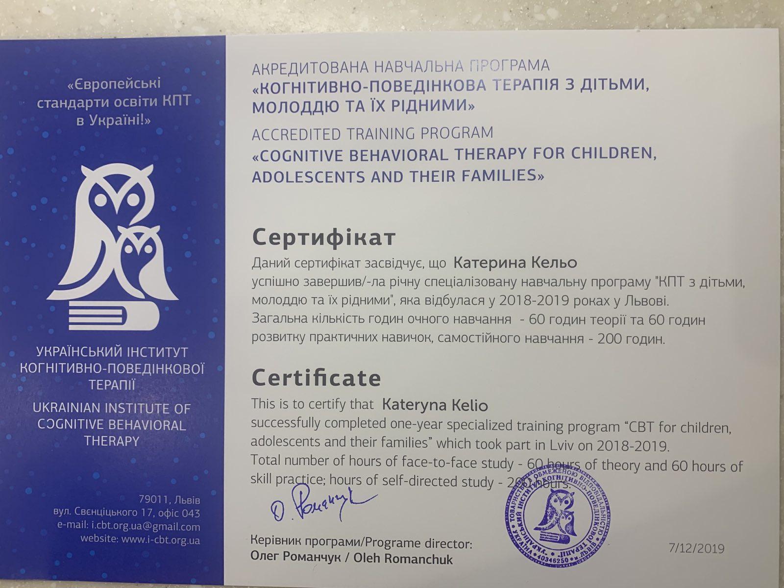 Обучение КПТ с детьми, молодежью и их родными (2018-2019)