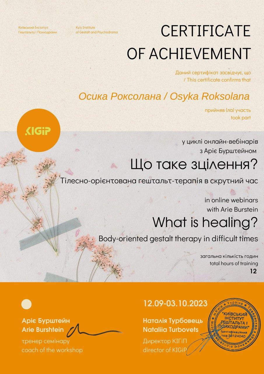 Участница Буковинского проекта групповой психотерапии по направлению Гештальт-терапия.