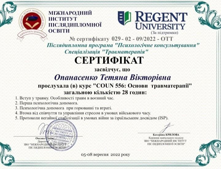 Курс "Основы травматерапии" (Международный институт последипломного образования)