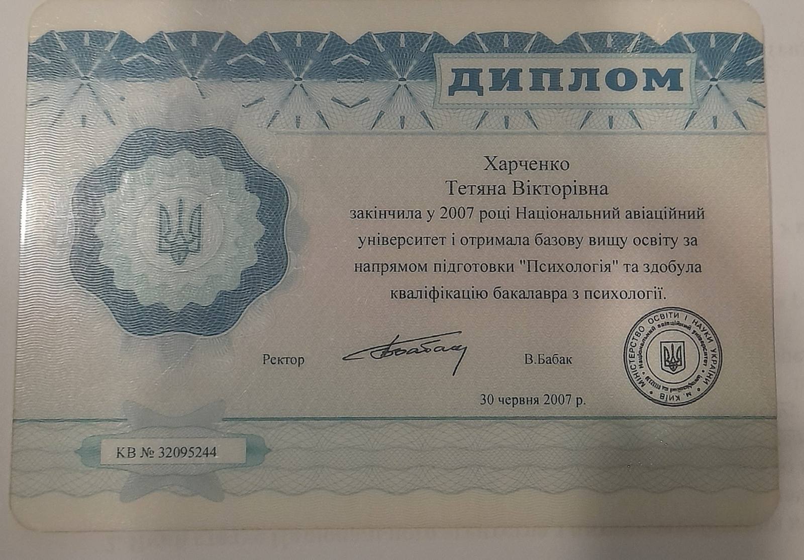 Высшее образование по специальности «психология» (Национальный авиационный университет)