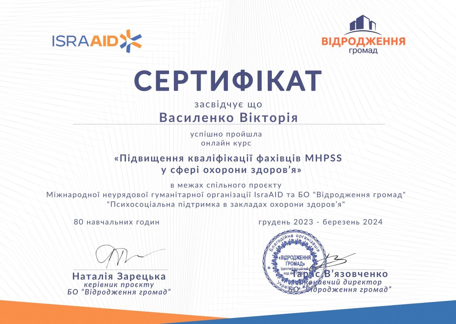 Повышение квалификации специалистов MHPSS в сфере здравоохранения, декабрь 2023-март 2024 года.