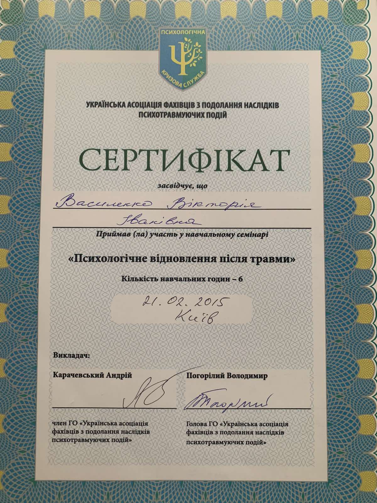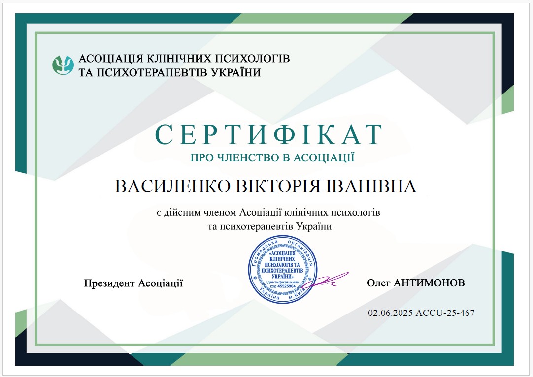 Психологиня, консультант в психоаналитическом подходе, семейная психологиня. Работаю с пострадавшим от абьюзивных отношений. Инструктор по предотвращению и лечению ПТСР. Член Украинского психоаналитического союза UPU.