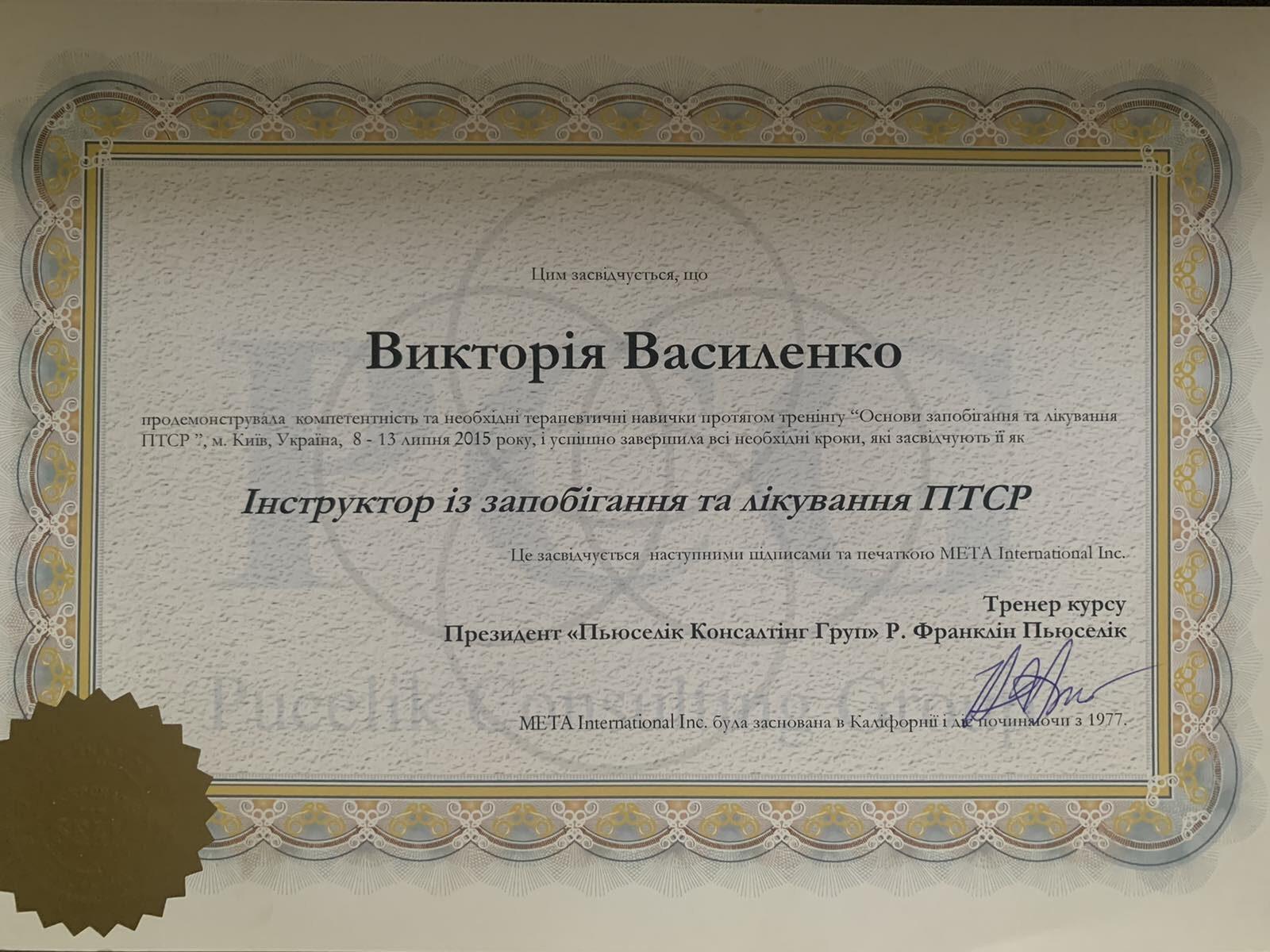 Инструктор по выявлению и профилактике ПТСР, Robert Puselik Consulting Group, сентябрь 2016