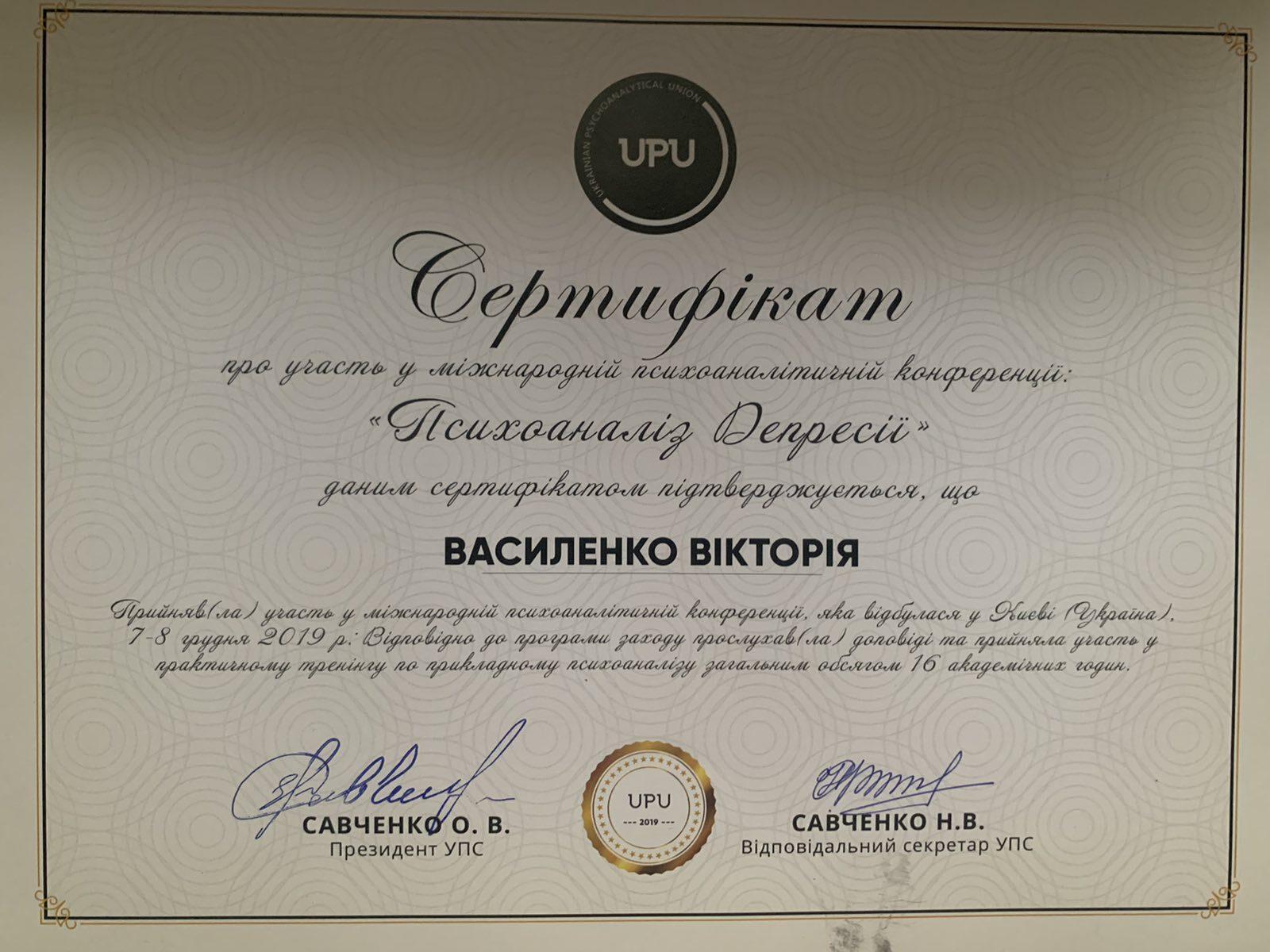 Психоанализ депрессии, Украинский психоаналитический союз, Киев, декабрь 2019